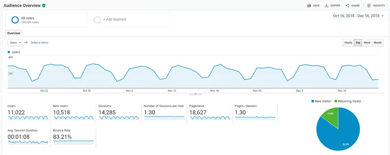Hopefully one of the big improvements to the site’s SEO will be from the speed increases (see the Speed section below). Below is a graph of the numbers of users per day for the last two months on the Wordpress blog:
