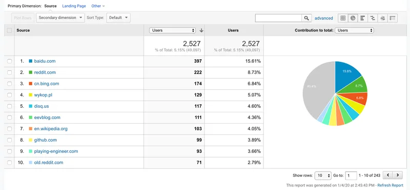 Most Popular Referrers