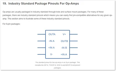 Added info on industry standard package pinouts for op-amps.