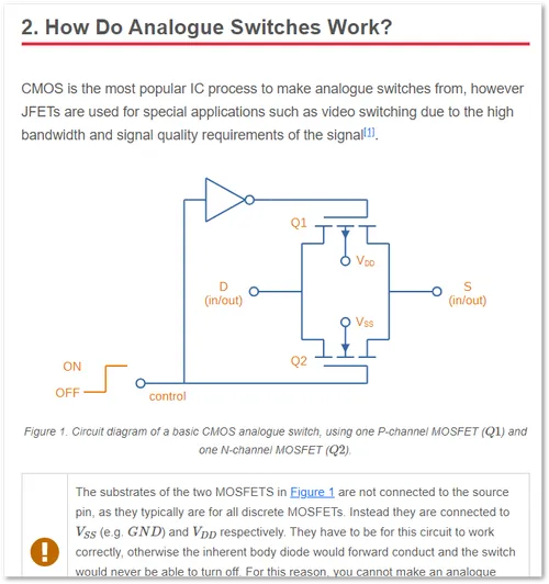- Added a “How They Work” section to the Analogue Switches page, including a circuit diagram.