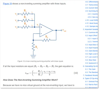 - Added info on summing amplifiers to the Op-Amps page.