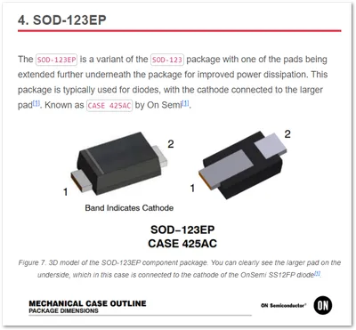 - Added info on the SOD-123EP component package, a variant of the SOD-123.