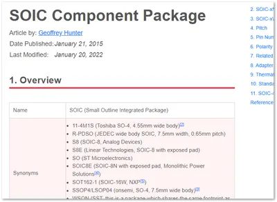 - Added more info on the SOIC component package, including the SOT-162-1 NXP synonym.