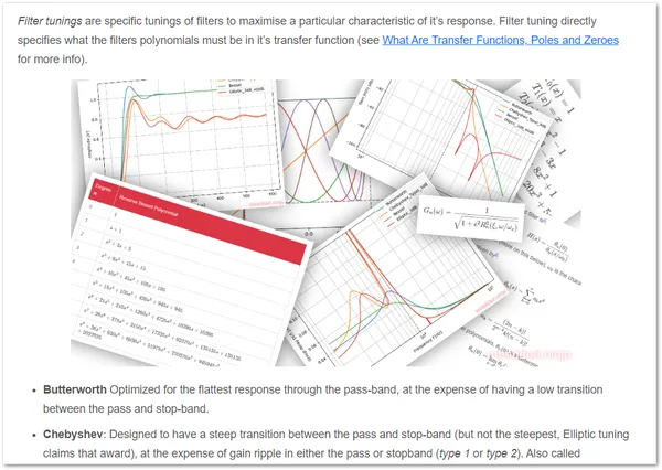 - Added more info on filter tunings including Chebyshev equations and plots, Bessel filter tunings, using the sympy Python package to generate tables of factored Butterworth filter polynomials, equations to find the normalized Butterworth tuning (filters) polynomials, bode plots of various order Butterworth tunings.