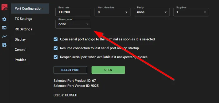 You can now specify a custom baud rate, and updated the default baud rates to include more common options.