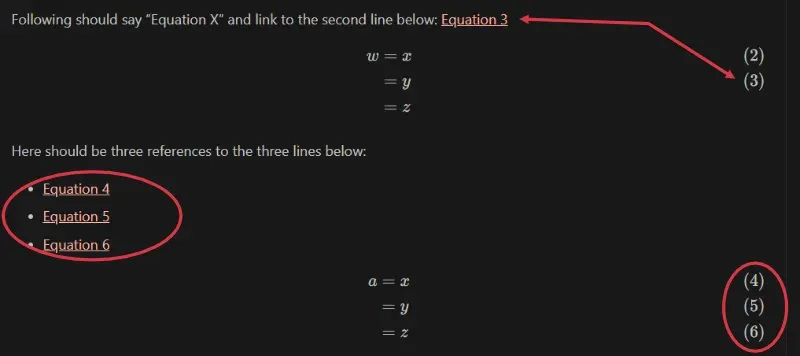 To get around this, I add \htmlId{}{} markers in the Katex and implement the reset of the logic for equation referencing in the client-side IRefClientScript.js script (which already does the figure and table referencing).