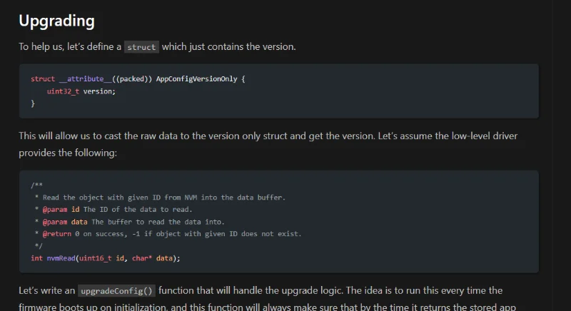 Added a new tutorial on how to manage and upgrade application config stored in non-volatile memory in an embedded system.